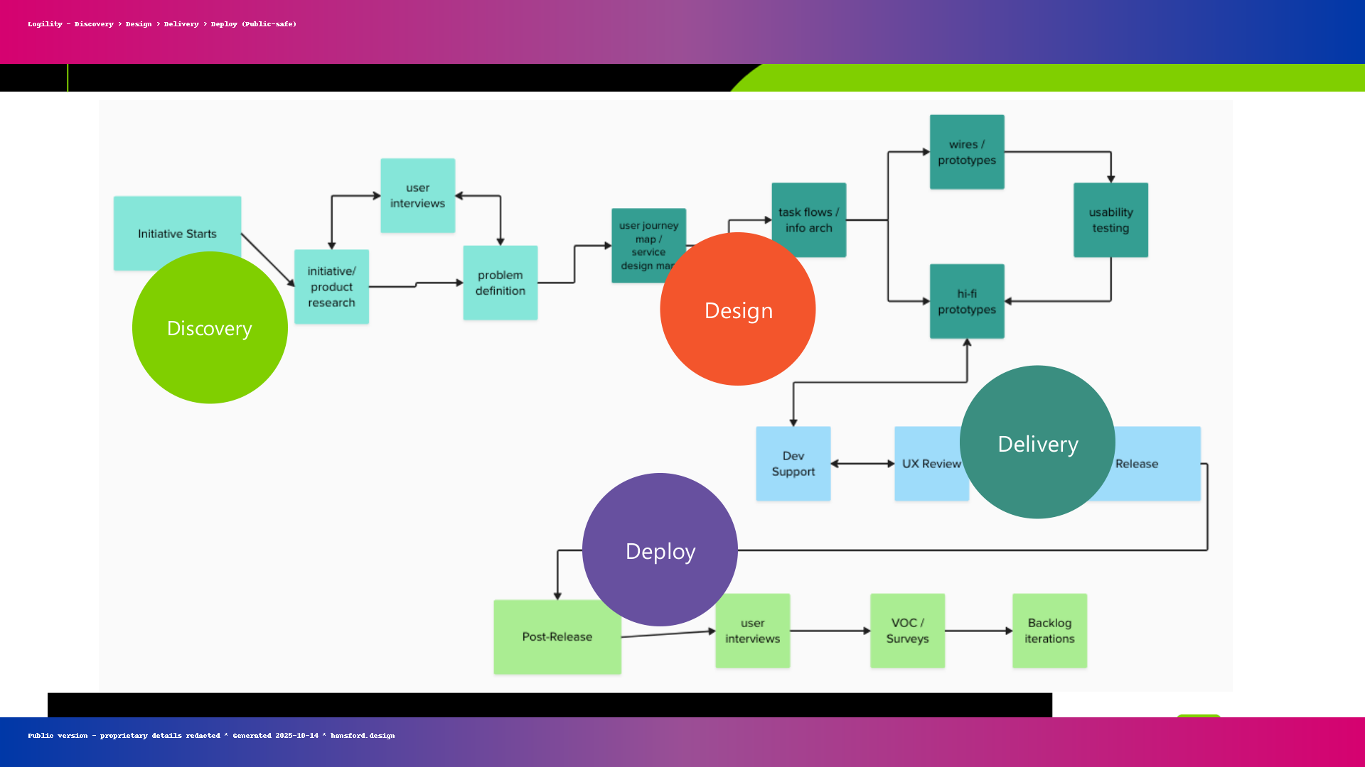 Operating model to de-risk and sequence work—connecting research, design, engineering, and release checks. Internal links removed.